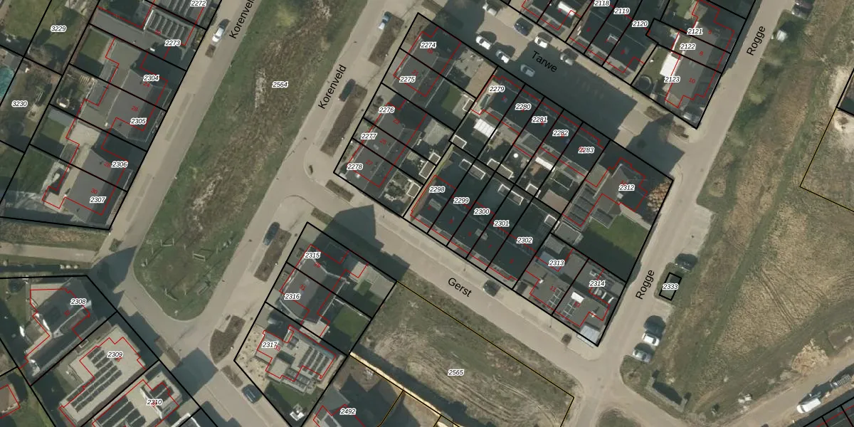 Het perceel waarop Gerst 1 staat heeft een oppervlakte van 143 m². Dit is een middelgroot perceel. De perceeloppervlakte wordt geregistreerd door het Kadaster. Gedetailleerde informatie over de maten van dit perceel kunt u vinden in het rapport Kadastrale kaart met maatvoering van Gerst 1.