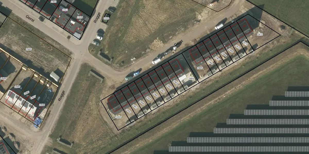Het perceel waarop Gerst 34 staat heeft een oppervlakte van 114 m². Dit is een middelgroot perceel. De perceeloppervlakte wordt geregistreerd door het Kadaster. Gedetailleerde informatie over de maten van dit perceel kunt u vinden in het rapport Kadastrale kaart met maatvoering van Gerst 34.