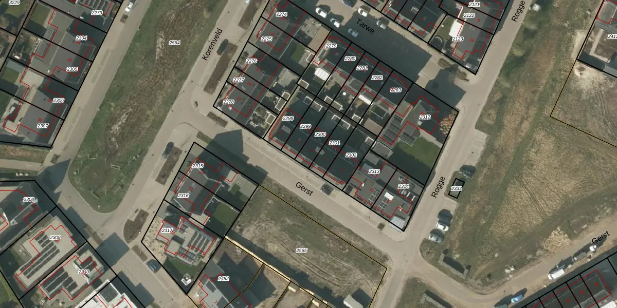 Het perceel waarop Gerst 5 staat heeft een oppervlakte van 113 m². Dit is een middelgroot perceel. De perceeloppervlakte wordt geregistreerd door het Kadaster. Gedetailleerde informatie over de maten van dit perceel kunt u vinden in het rapport Kadastrale kaart met maatvoering van Gerst 5.