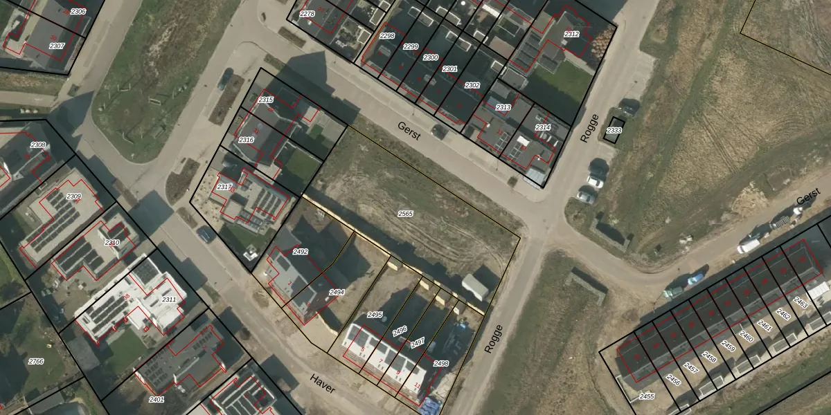 Het perceel waarop Gerst 8 staat heeft een oppervlakte van 1047 m². Dit is een zeer groot perceel. De perceeloppervlakte wordt geregistreerd door het Kadaster. Gedetailleerde informatie over de maten van dit perceel kunt u vinden in het rapport Kadastrale kaart met maatvoering van Gerst 8.