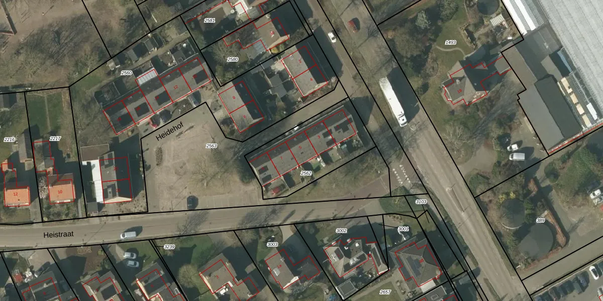 Heidehof 5 is gelegen op kadastraal perceel ATN01E2562. Deze kadastrale aanduiding is uniek en wordt gebruikt door het Kadaster om eigendomsrechten en andere zakelijke rechten vast te leggen. Het perceel maakt onderdeel uit van de kadastrale gemeente Asten.