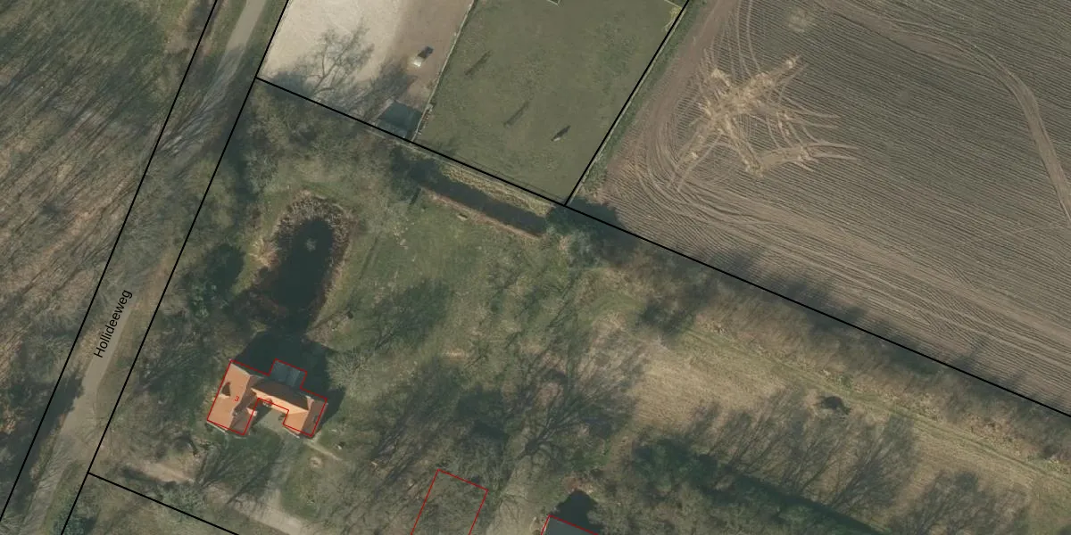 Het perceel waarop Hollideeweg 3-a staat heeft een oppervlakte van 2,2 ha. Dit is een zeer groot perceel. De perceeloppervlakte wordt geregistreerd door het Kadaster. Gedetailleerde informatie over de maten van dit perceel kunt u vinden in het rapport Kadastrale kaart met maatvoering van Hollideeweg 3-a.