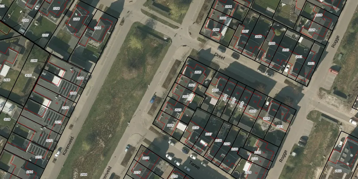Gebruik de zoekbalk of klik op een perceel voor informatie over de adressen binnen dit perceel.