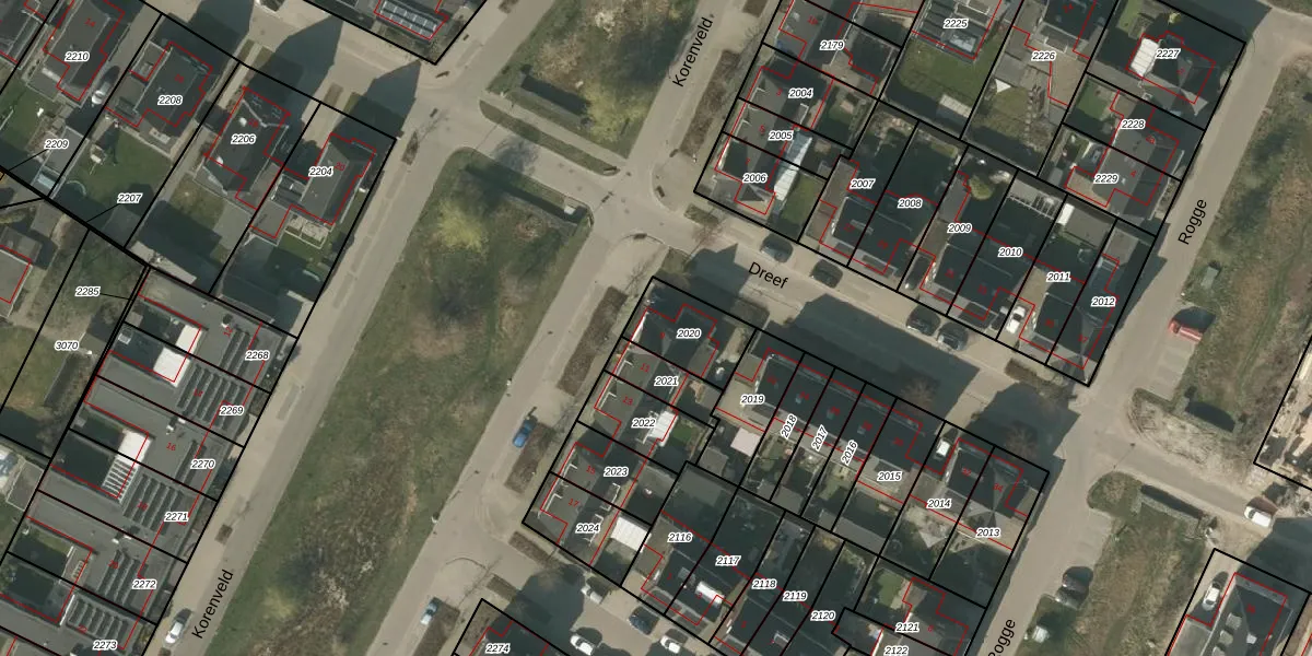 Het perceel waarop Korenveld 9 staat heeft een oppervlakte van 186 m². Dit is een middelgroot perceel. De perceeloppervlakte wordt geregistreerd door het Kadaster. Gedetailleerde informatie over de maten van dit perceel kunt u vinden in het rapport Kadastrale kaart met maatvoering van Korenveld 9.