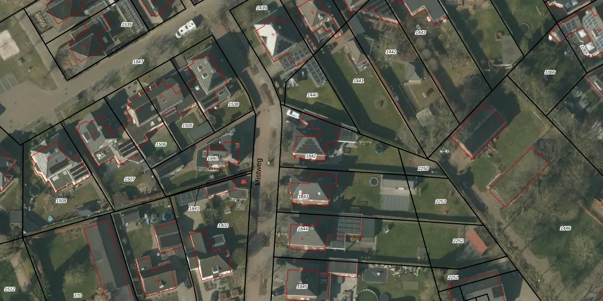 Het perceel waarop Mistweg 1 staat heeft een oppervlakte van 588 m². Dit is een groot perceel. De perceeloppervlakte wordt geregistreerd door het Kadaster. Gedetailleerde informatie over de maten van dit perceel kunt u vinden in het rapport Kadastrale kaart met maatvoering van Mistweg 1.
