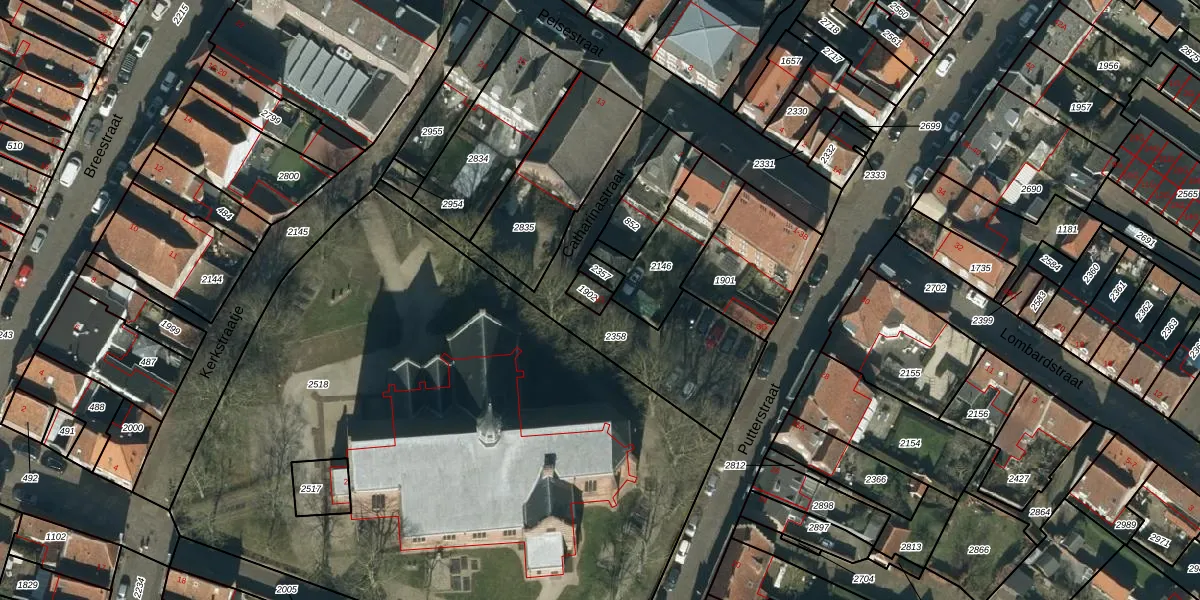 Gebruik de zoekbalk of klik op een perceel voor informatie over de adressen binnen dit perceel.