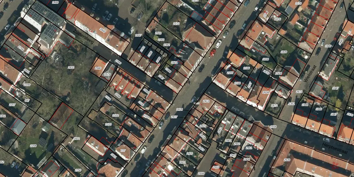 Gebruik de zoekbalk of klik op een perceel voor informatie over de adressen binnen dit perceel.