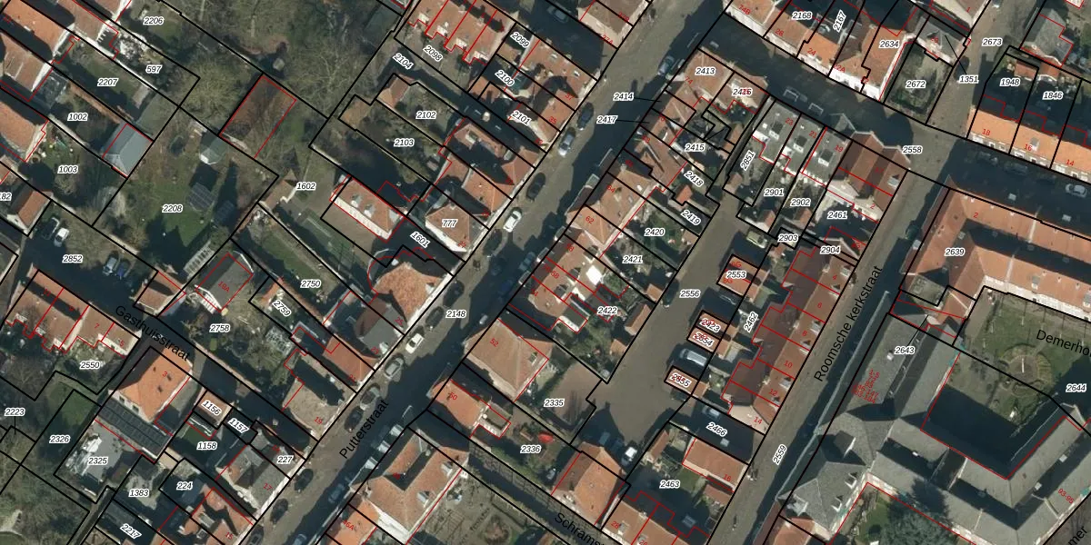 Het perceel waarop Putterstraat 56 staat heeft een oppervlakte van 380 m². Dit is een groot perceel. De perceeloppervlakte wordt geregistreerd door het Kadaster. Gedetailleerde informatie over de maten van dit perceel kunt u vinden in het rapport Kadastrale kaart met maatvoering van Putterstraat 56.