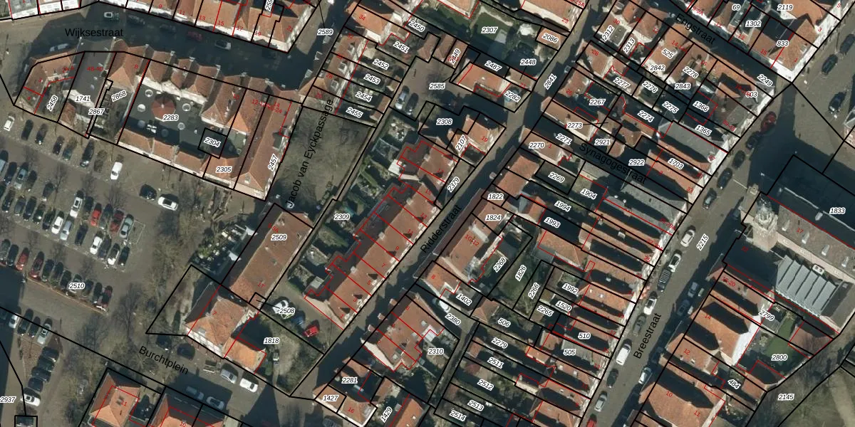 Ridderstraat 13 is gelegen op kadastraal perceel HDN02A2309. Deze kadastrale aanduiding is uniek en wordt gebruikt door het Kadaster om eigendomsrechten en andere zakelijke rechten vast te leggen. Het perceel maakt onderdeel uit van de kadastrale gemeente Heusden.
