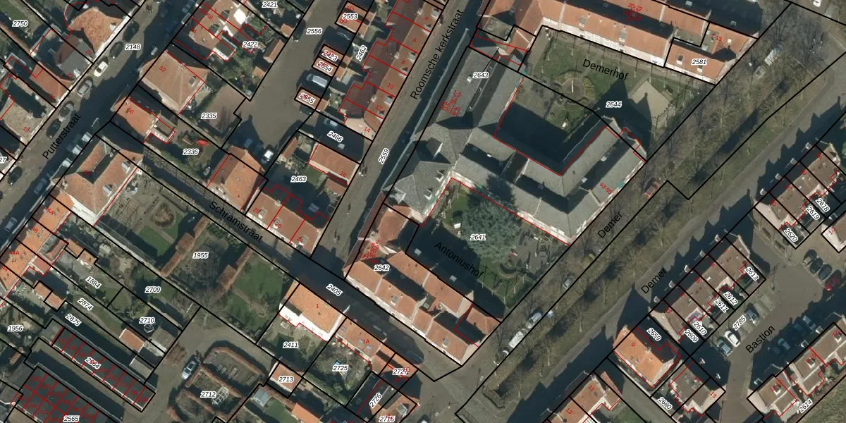 Het perceel waarop Roomsche kerkstraat 183 staat heeft een oppervlakte van 2215 m². Dit is een zeer groot perceel. De perceeloppervlakte wordt geregistreerd door het Kadaster. Gedetailleerde informatie over de maten van dit perceel kunt u vinden in het rapport Kadastrale kaart met maatvoering van Roomsche kerkstraat 183.