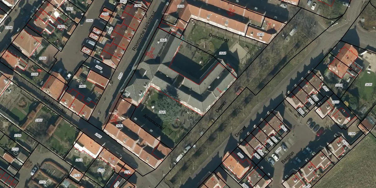 Het perceel waarop het adres ligt is HDN02-A-2641. De afkorting 'HDN02' staat voor kadastrale gemeente Heusden. De gemiddelde perceelgrootte in Heusden is 5625,16 m². Dit perceel is kleiner: de perceeloppervlakte bedraagt 2215 m². De grootste perceeloppervlakte in de kadastrale gemeente is 40,2 ha. De kleinste oppervlakte bedraagt 0 m². Er zijn 43 adressen aanwezig op het perceel. In de Basisregistratie Kadaster (BRK) werden de grenzen van het perceel geregistreerd op 26-02-2007.