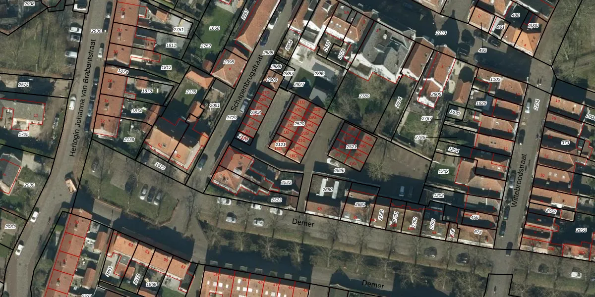 Schapenbrugstraat 18-G is gelegen op kadastraal perceel HDN02A2520. Deze kadastrale aanduiding is uniek en wordt gebruikt door het Kadaster om eigendomsrechten en andere zakelijke rechten vast te leggen. Het perceel maakt onderdeel uit van de kadastrale gemeente Heusden.