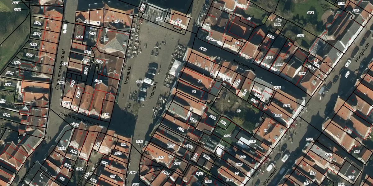 Het perceel waarop Vismarkt 5-A staat heeft een oppervlakte van 122 m². Dit is een middelgroot perceel. De perceeloppervlakte wordt geregistreerd door het Kadaster. Gedetailleerde informatie over de maten van dit perceel kunt u vinden in het rapport Kadastrale kaart met maatvoering van Vismarkt 5-A.
