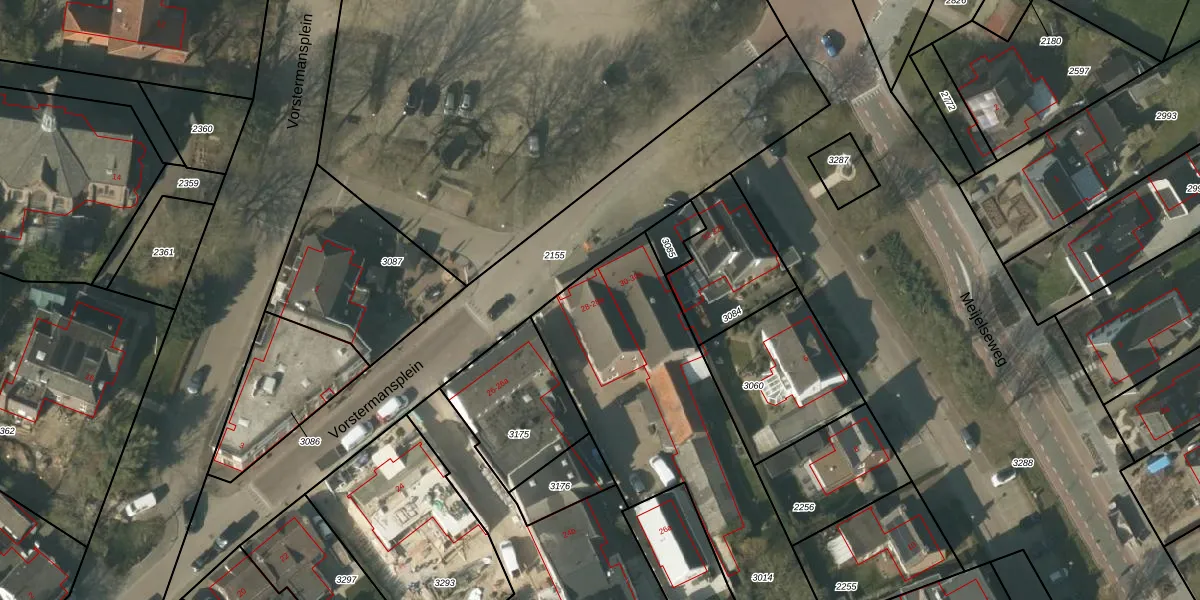 Het perceel waarop Vorstermansplein 28 staat heeft een oppervlakte van 1250 m². Dit is een zeer groot perceel. De perceeloppervlakte wordt geregistreerd door het Kadaster. Gedetailleerde informatie over de maten van dit perceel kunt u vinden in het rapport Kadastrale kaart met maatvoering van Vorstermansplein 28.