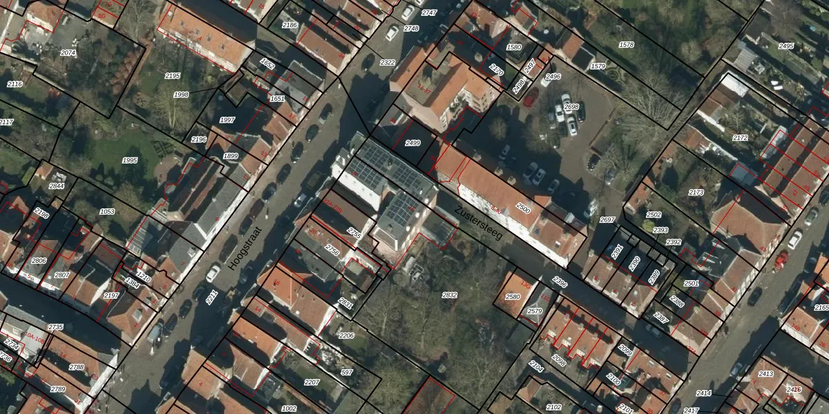 Zustersteeg 15 is gelegen op kadastraal perceel HDN02A2832. Deze kadastrale aanduiding is uniek en wordt gebruikt door het Kadaster om eigendomsrechten en andere zakelijke rechten vast te leggen. Het perceel maakt onderdeel uit van de kadastrale gemeente Heusden.