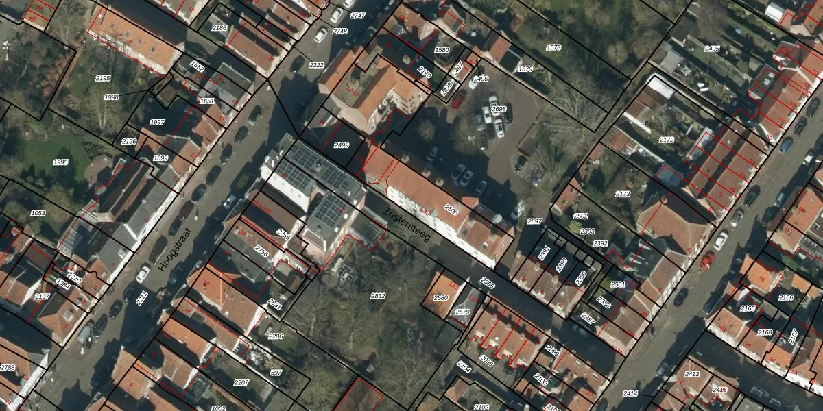 Zustersteeg 18 is gelegen op kadastraal perceel HDN02A2500. Deze kadastrale aanduiding is uniek en wordt gebruikt door het Kadaster om eigendomsrechten en andere zakelijke rechten vast te leggen. Het perceel maakt onderdeel uit van de kadastrale gemeente Heusden.