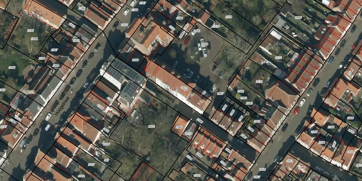 Zustersteeg 28 is gelegen op kadastraal perceel HDN02A2500. Deze kadastrale aanduiding is uniek en wordt gebruikt door het Kadaster om eigendomsrechten en andere zakelijke rechten vast te leggen. Het perceel maakt onderdeel uit van de kadastrale gemeente Heusden.