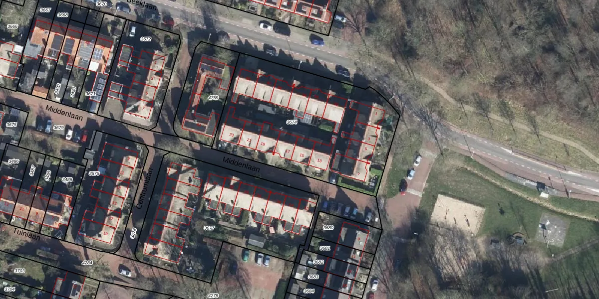 Middenlaan 15 is gelegen op kadastraal perceel DWH00C3674. Deze kadastrale aanduiding is uniek en wordt gebruikt door het Kadaster om eigendomsrechten en andere zakelijke rechten vast te leggen. Het perceel maakt onderdeel uit van de kadastrale gemeente Doorwerth.