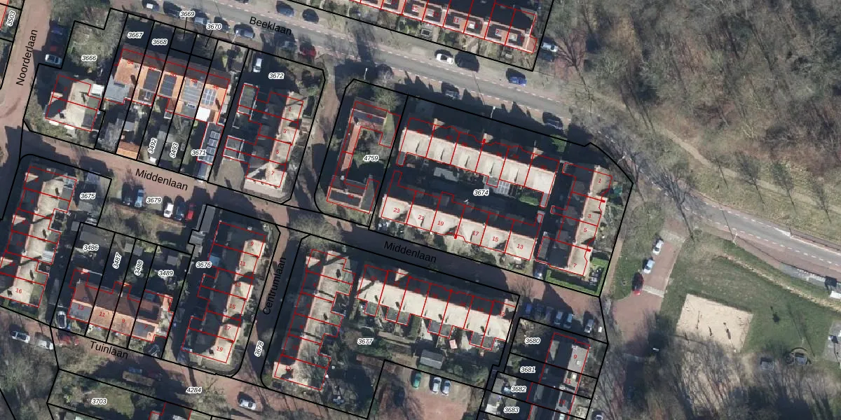 Middenlaan 21 is gelegen op kadastraal perceel DWH00C3674. Deze kadastrale aanduiding is uniek en wordt gebruikt door het Kadaster om eigendomsrechten en andere zakelijke rechten vast te leggen. Het perceel maakt onderdeel uit van de kadastrale gemeente Doorwerth.
