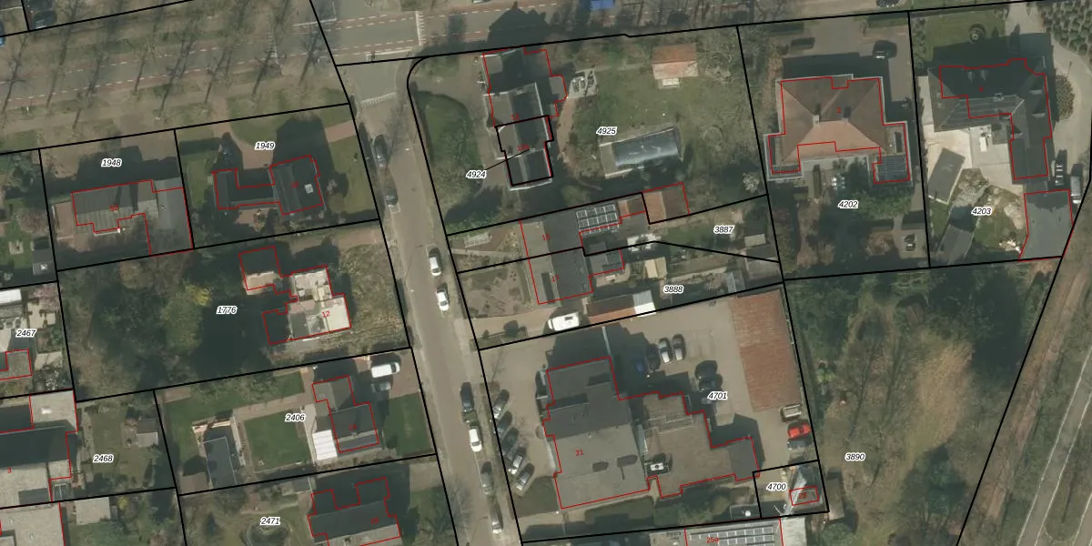 Gebruik de zoekbalk of klik op een perceel voor informatie over de adressen binnen dit perceel.