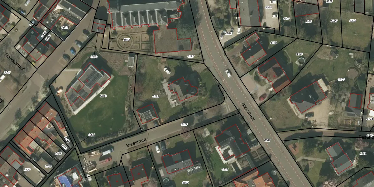 Biesstraat 2 is gelegen op kadastraal perceel HHS00C5182. Deze kadastrale aanduiding is uniek en wordt gebruikt door het Kadaster om eigendomsrechten en andere zakelijke rechten vast te leggen. Het perceel maakt onderdeel uit van de kadastrale gemeente Heythuysen.