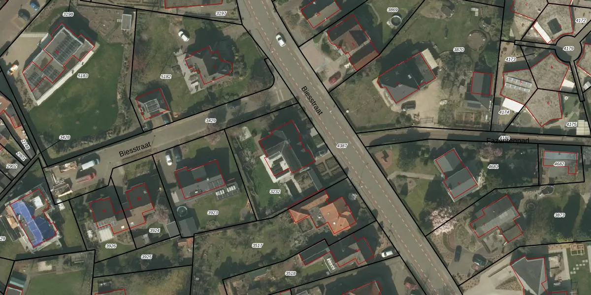 Biesstraat 4 is gelegen op kadastraal perceel HHS00C3232. Deze kadastrale aanduiding is uniek en wordt gebruikt door het Kadaster om eigendomsrechten en andere zakelijke rechten vast te leggen. Het perceel maakt onderdeel uit van de kadastrale gemeente Heythuysen.