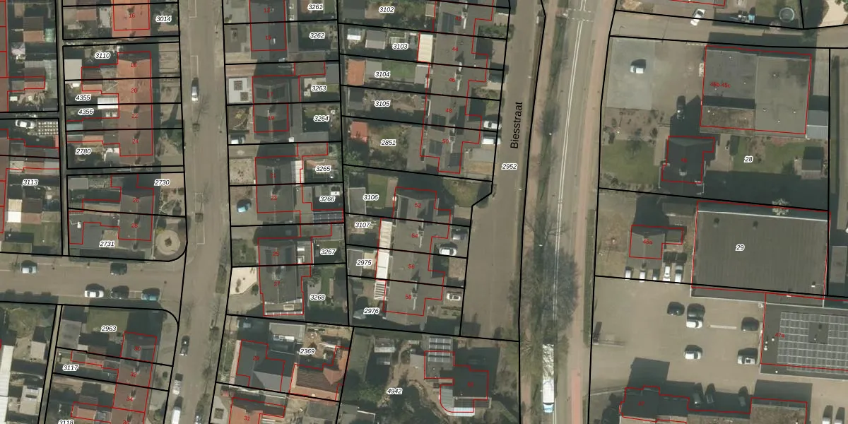 Biesstraat 52 is gelegen op kadastraal perceel HHS00C3106. Deze kadastrale aanduiding is uniek en wordt gebruikt door het Kadaster om eigendomsrechten en andere zakelijke rechten vast te leggen. Het perceel maakt onderdeel uit van de kadastrale gemeente Heythuysen.