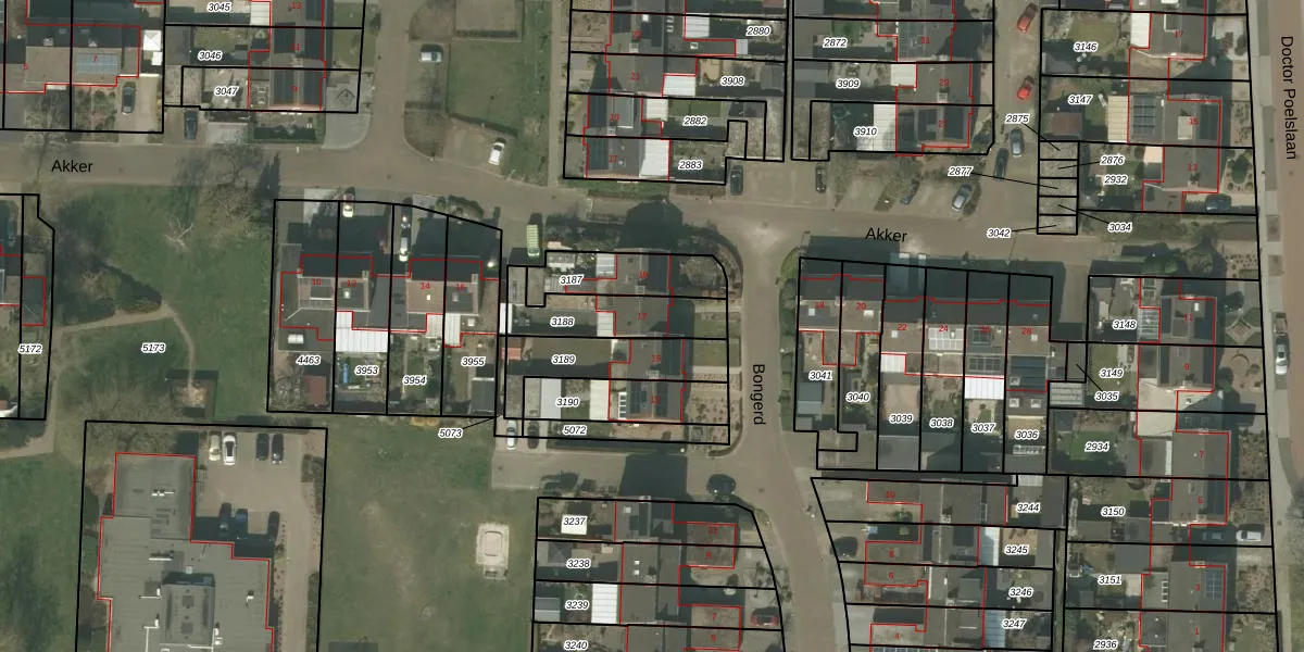 Het perceel waarop Bongerd 17 staat heeft een oppervlakte van 225 m². Dit is een middelgroot perceel. De perceeloppervlakte wordt geregistreerd door het Kadaster. Gedetailleerde informatie over de maten van dit perceel kunt u vinden in het rapport Kadastrale kaart met maatvoering van Bongerd 17.