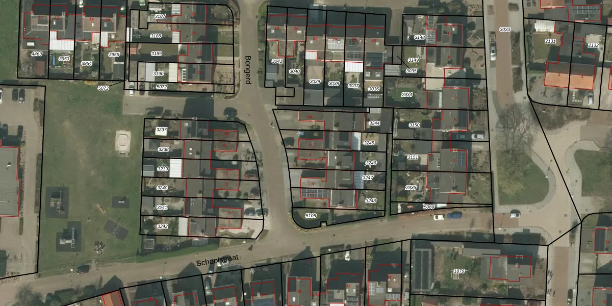 Het perceel waarop Bongerd 6 staat heeft een oppervlakte van 206 m². Dit is een middelgroot perceel. De perceeloppervlakte wordt geregistreerd door het Kadaster. Gedetailleerde informatie over de maten van dit perceel kunt u vinden in het rapport Kadastrale kaart met maatvoering van Bongerd 6.