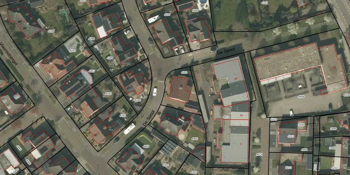 Het perceel waarop De Spool 4 staat heeft een oppervlakte van 415 m². Dit is een groot perceel. De perceeloppervlakte wordt geregistreerd door het Kadaster. Gedetailleerde informatie over de maten van dit perceel kunt u vinden in het rapport Kadastrale kaart met maatvoering van De Spool 4.