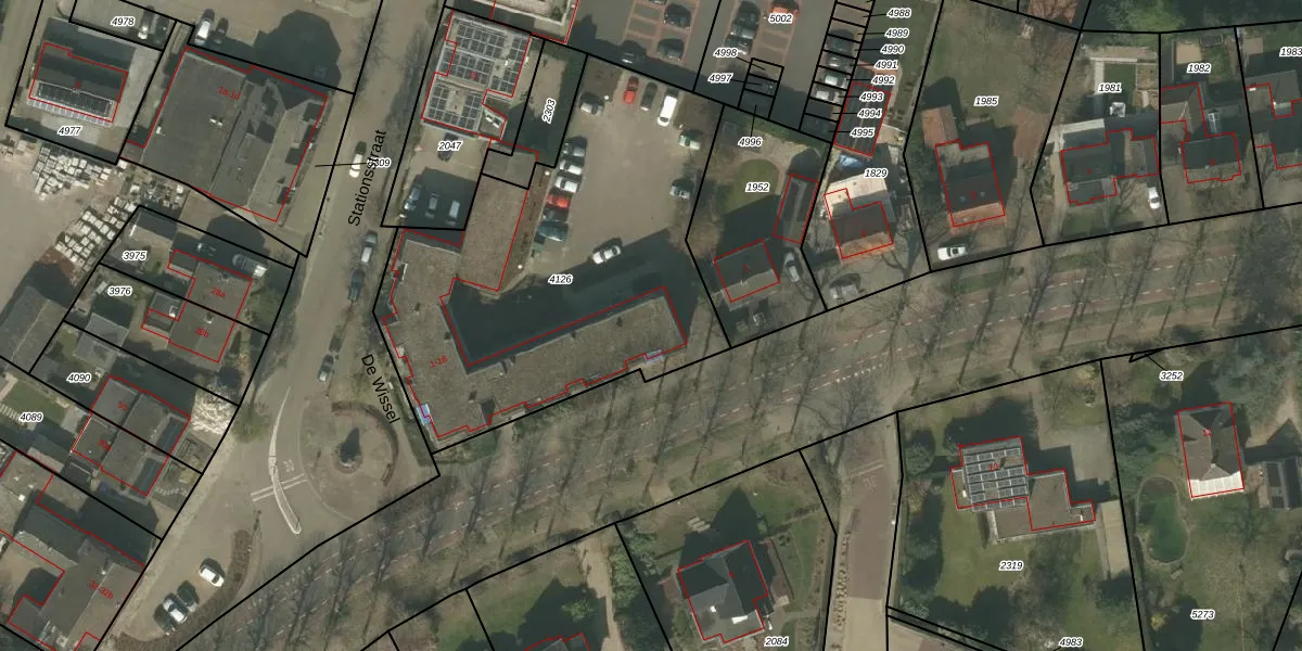 Het perceel waarop De Wissel 15 staat heeft een oppervlakte van 1947 m². Dit is een zeer groot perceel. De perceeloppervlakte wordt geregistreerd door het Kadaster. Gedetailleerde informatie over de maten van dit perceel kunt u vinden in het rapport Kadastrale kaart met maatvoering van De Wissel 15.