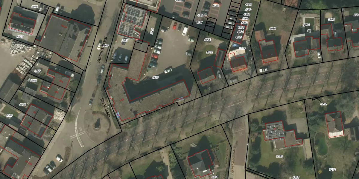 Het perceel waarop De Wissel 18 staat heeft een oppervlakte van 1947 m². Dit is een zeer groot perceel. De perceeloppervlakte wordt geregistreerd door het Kadaster. Gedetailleerde informatie over de maten van dit perceel kunt u vinden in het rapport Kadastrale kaart met maatvoering van De Wissel 18.