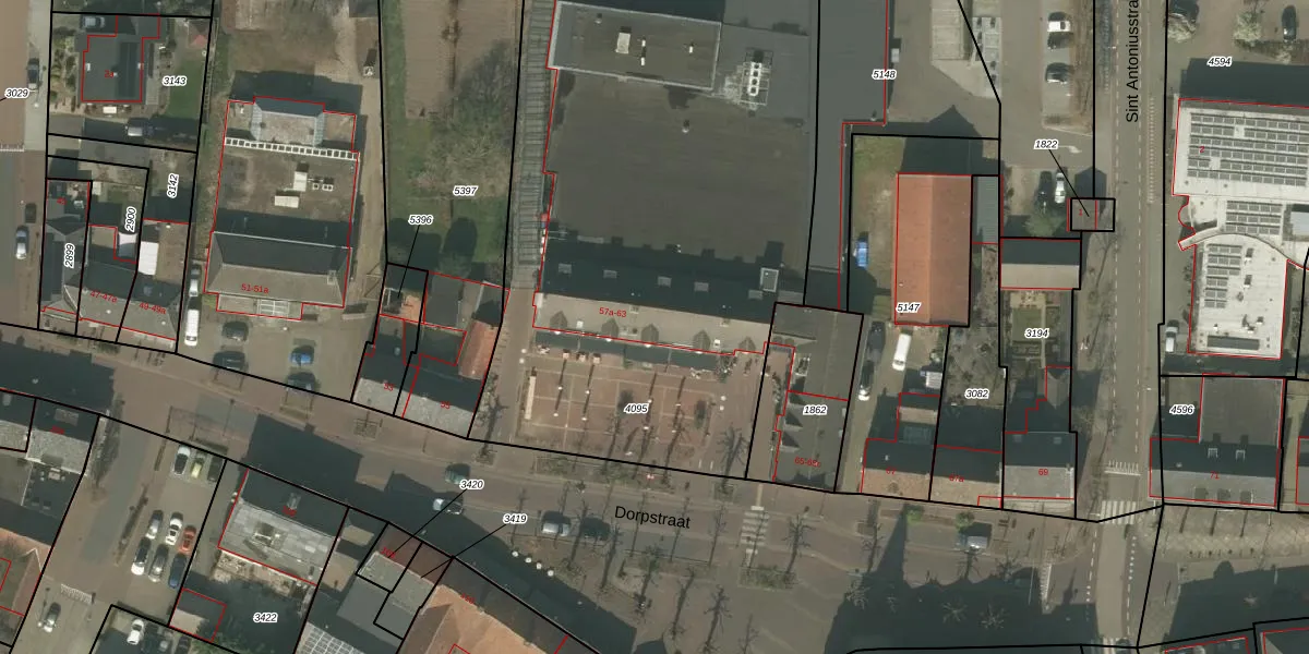 Het perceel waarop Dorpstraat 59-a staat heeft een oppervlakte van 4050 m². Dit is een zeer groot perceel. De perceeloppervlakte wordt geregistreerd door het Kadaster. Gedetailleerde informatie over de maten van dit perceel kunt u vinden in het rapport Kadastrale kaart met maatvoering van Dorpstraat 59-a.