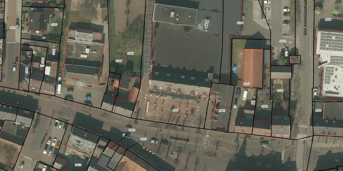 Het perceel waarop Dorpstraat 63 staat heeft een oppervlakte van 4050 m². Dit is een zeer groot perceel. De perceeloppervlakte wordt geregistreerd door het Kadaster. Gedetailleerde informatie over de maten van dit perceel kunt u vinden in het rapport Kadastrale kaart met maatvoering van Dorpstraat 63.