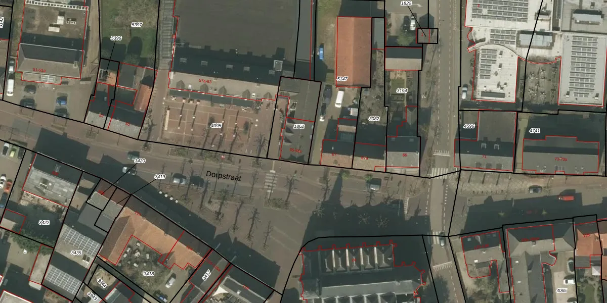 Het perceel waarop Dorpstraat 65-a staat heeft een oppervlakte van 387 m². Dit is een groot perceel. De perceeloppervlakte wordt geregistreerd door het Kadaster. Gedetailleerde informatie over de maten van dit perceel kunt u vinden in het rapport Kadastrale kaart met maatvoering van Dorpstraat 65-a.