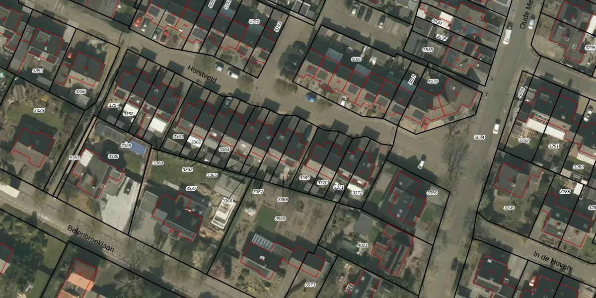 Gebruik de zoekbalk of klik op een perceel voor informatie over de adressen binnen dit perceel.