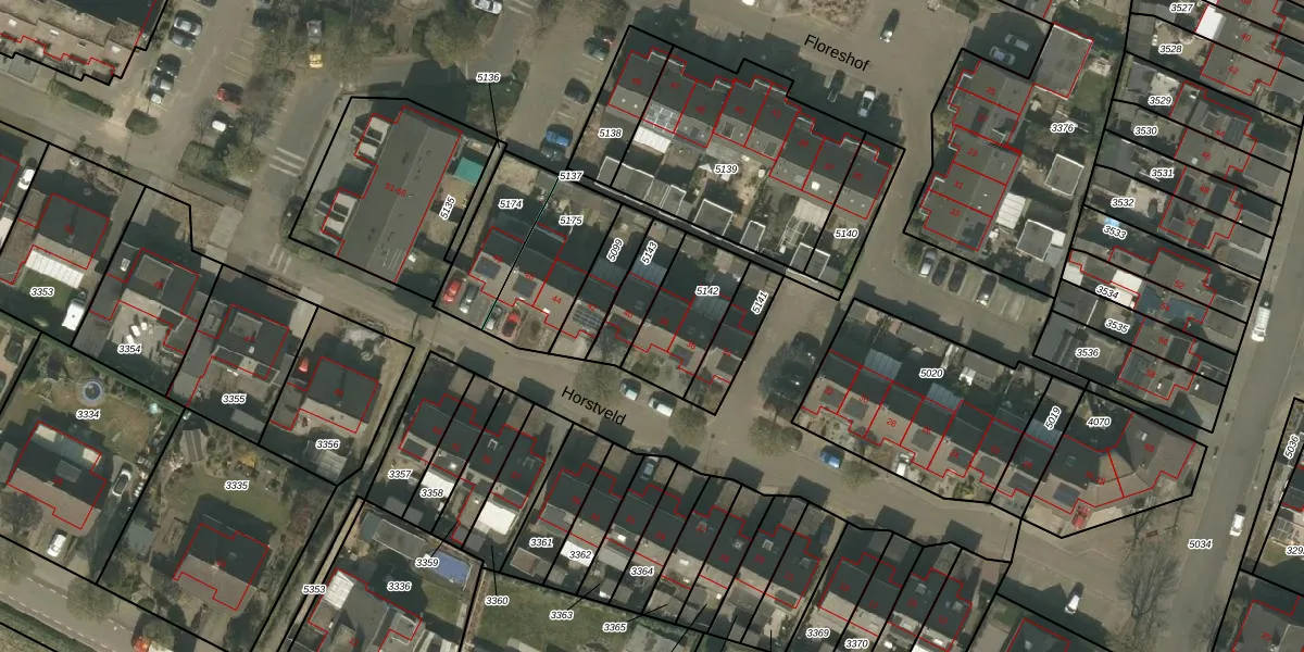 Het perceel waarop Horstveld 38 staat heeft een oppervlakte van 253 m². Dit is een middelgroot perceel. De perceeloppervlakte wordt geregistreerd door het Kadaster. Gedetailleerde informatie over de maten van dit perceel kunt u vinden in het rapport Kadastrale kaart met maatvoering van Horstveld 38.