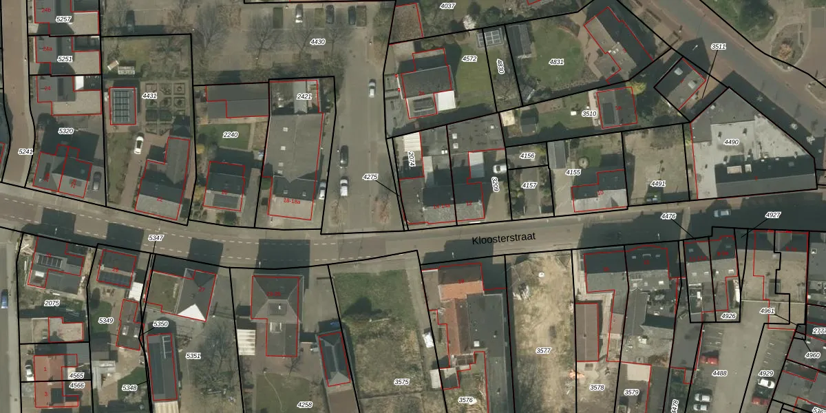 Het perceel waarop Kloosterstraat 14-a staat heeft een oppervlakte van 295 m². Dit is een middelgroot perceel. De perceeloppervlakte wordt geregistreerd door het Kadaster. Gedetailleerde informatie over de maten van dit perceel kunt u vinden in het rapport Kadastrale kaart met maatvoering van Kloosterstraat 14-a.
