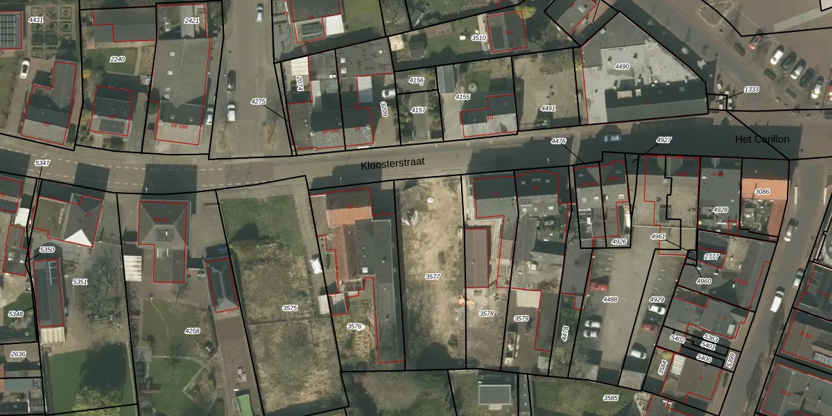 Het perceel waarop Kloosterstraat 19-a staat heeft een oppervlakte van 780 m². Dit is een groot perceel. De perceeloppervlakte wordt geregistreerd door het Kadaster. Gedetailleerde informatie over de maten van dit perceel kunt u vinden in het rapport Kadastrale kaart met maatvoering van Kloosterstraat 19-a.