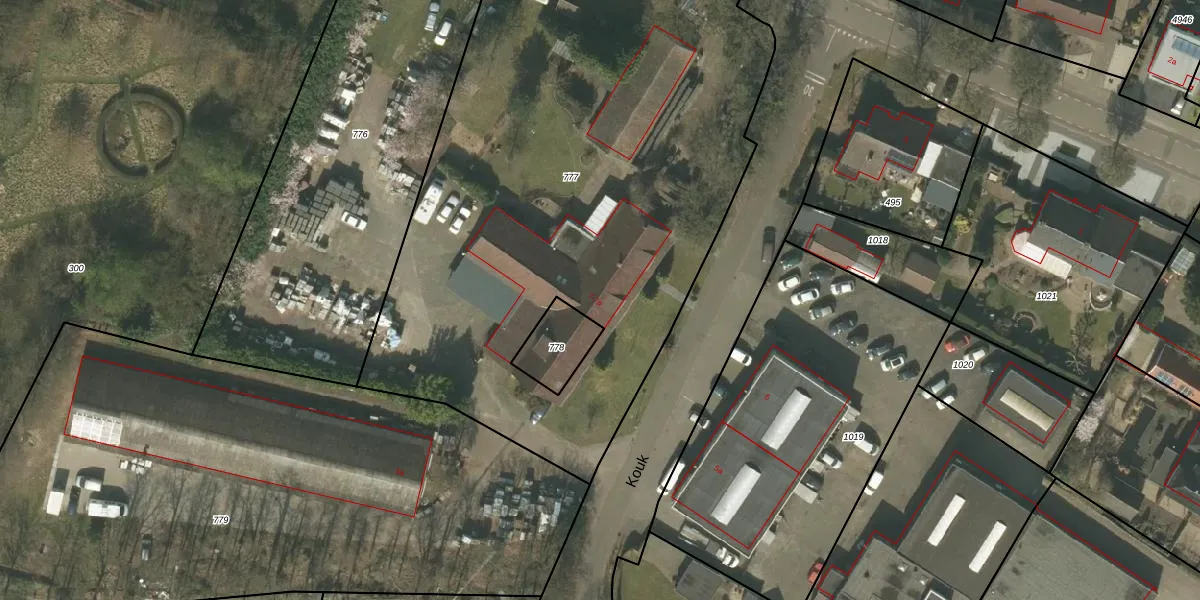 Het perceel waarop Kouk 7-a staat heeft een oppervlakte van 3861 m². Dit is een zeer groot perceel. De perceeloppervlakte wordt geregistreerd door het Kadaster. Gedetailleerde informatie over de maten van dit perceel kunt u vinden in het rapport Kadastrale kaart met maatvoering van Kouk 7-a.