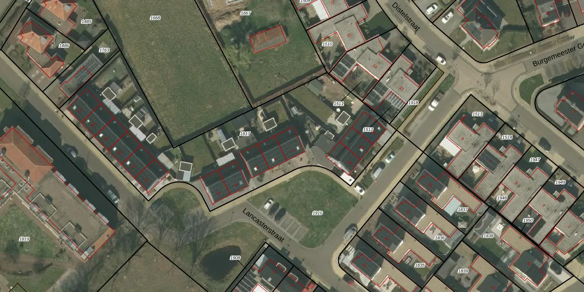 Het perceel waarop Lancasterstraat 2 staat heeft een oppervlakte van 2879 m². Dit is een zeer groot perceel. De perceeloppervlakte wordt geregistreerd door het Kadaster. Gedetailleerde informatie over de maten van dit perceel kunt u vinden in het rapport Kadastrale kaart met maatvoering van Lancasterstraat 2.