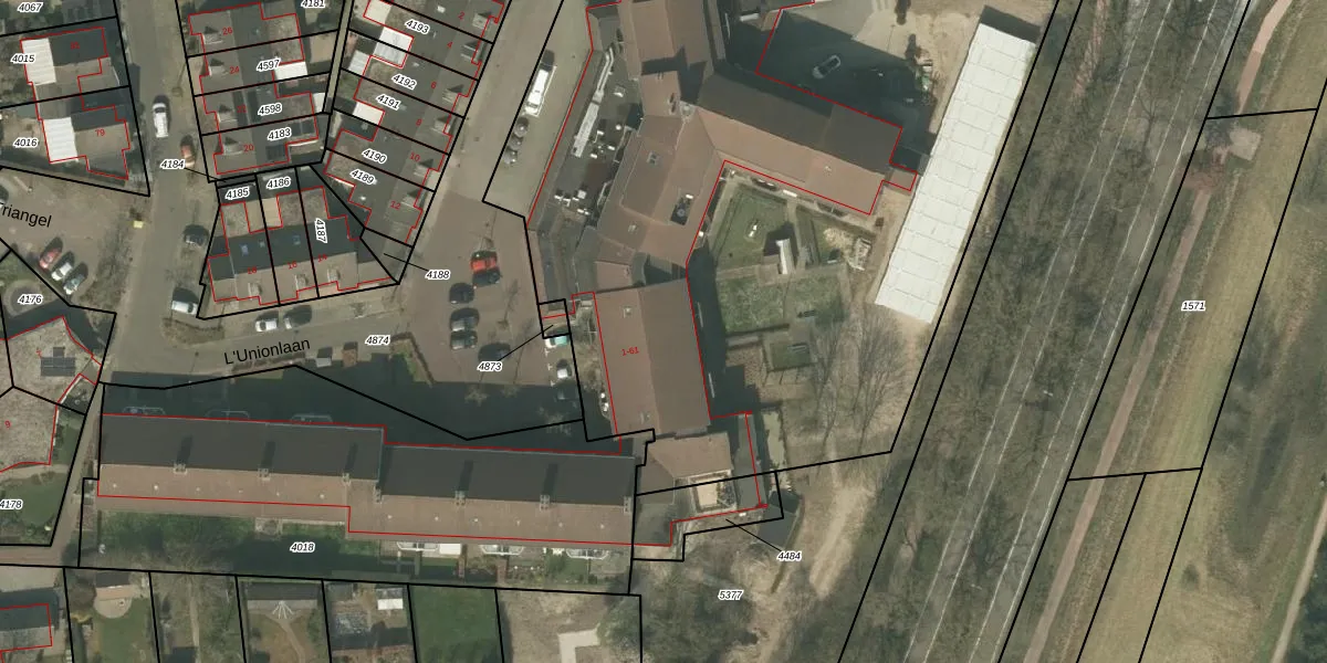 L'Unionlaan 1-k240 is gelegen op kadastraal perceel HHS00C4019. Deze kadastrale aanduiding is uniek en wordt gebruikt door het Kadaster om eigendomsrechten en andere zakelijke rechten vast te leggen. Het perceel maakt onderdeel uit van de kadastrale gemeente Heythuysen.