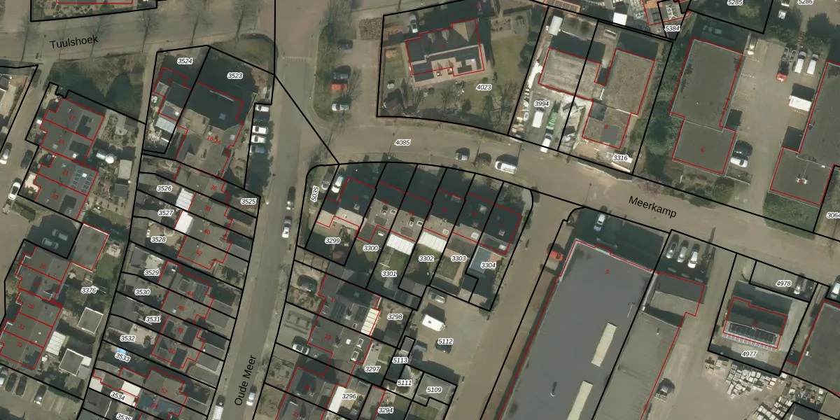 Gebruik de zoekbalk of klik op een perceel voor informatie over de adressen binnen dit perceel.