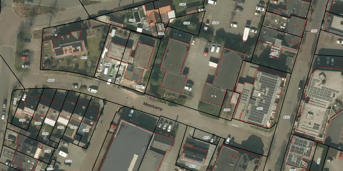 Het perceel waarop Meerkamp 6 staat heeft een oppervlakte van 3333 m². Dit is een zeer groot perceel. De perceeloppervlakte wordt geregistreerd door het Kadaster. Gedetailleerde informatie over de maten van dit perceel kunt u vinden in het rapport Kadastrale kaart met maatvoering van Meerkamp 6.