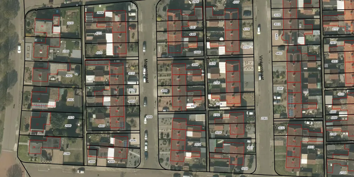 Gebruik de zoekbalk of klik op een perceel voor informatie over de adressen binnen dit perceel.