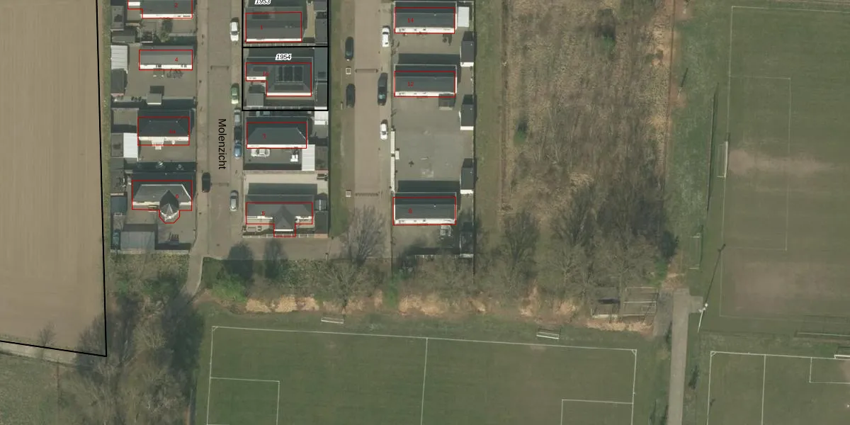 Het perceel waarop Molenzicht 8 staat heeft een oppervlakte van 13,3 ha. Dit is een zeer groot perceel. De perceeloppervlakte wordt geregistreerd door het Kadaster. Gedetailleerde informatie over de maten van dit perceel kunt u vinden in het rapport Kadastrale kaart met maatvoering van Molenzicht 8.