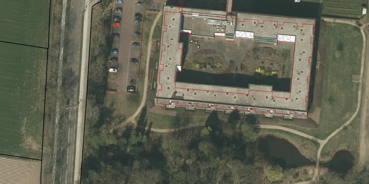 Het perceel waarop Op de Bos 14 staat heeft een oppervlakte van 3,4 ha. Dit is een zeer groot perceel. De perceeloppervlakte wordt geregistreerd door het Kadaster. Gedetailleerde informatie over de maten van dit perceel kunt u vinden in het rapport Kadastrale kaart met maatvoering van Op de Bos 14.
