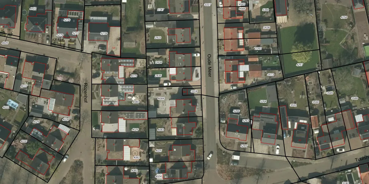 Gebruik de zoekbalk of klik op een perceel voor informatie over de adressen binnen dit perceel.