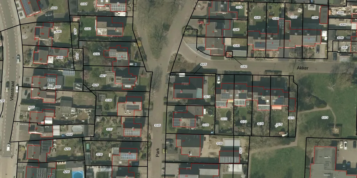 Gebruik de zoekbalk of klik op een perceel voor informatie over de adressen binnen dit perceel.