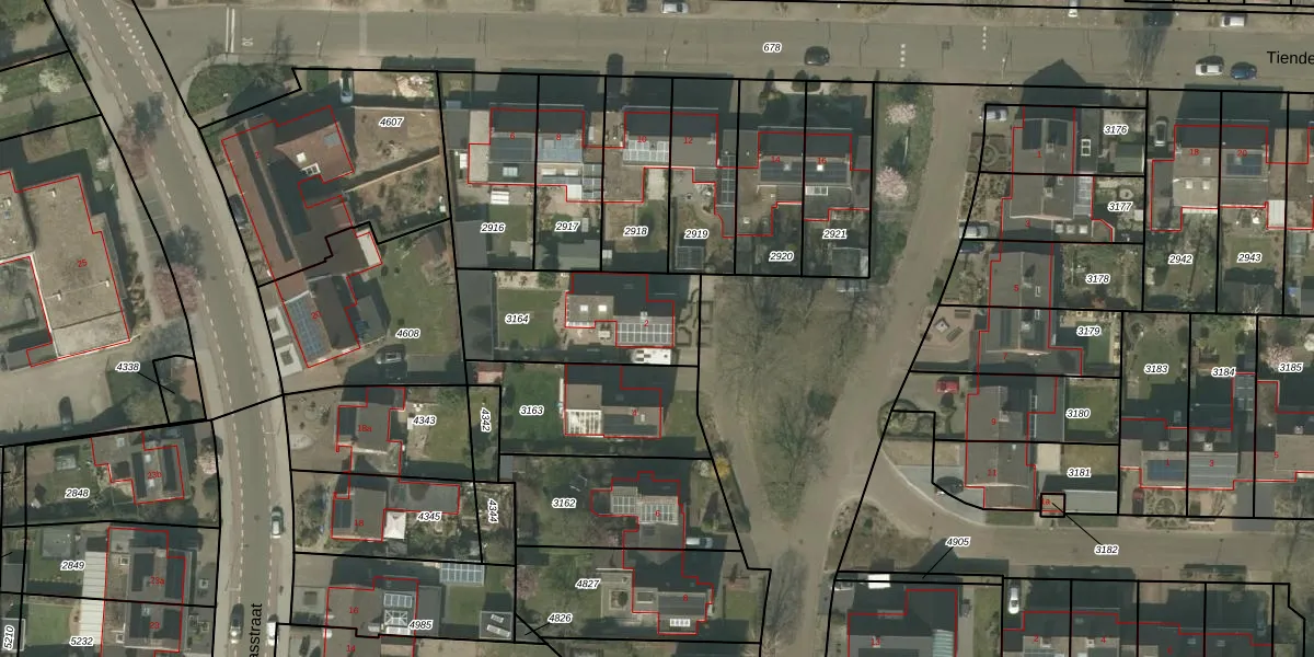 Gebruik de zoekbalk of klik op een perceel voor informatie over de adressen binnen dit perceel.